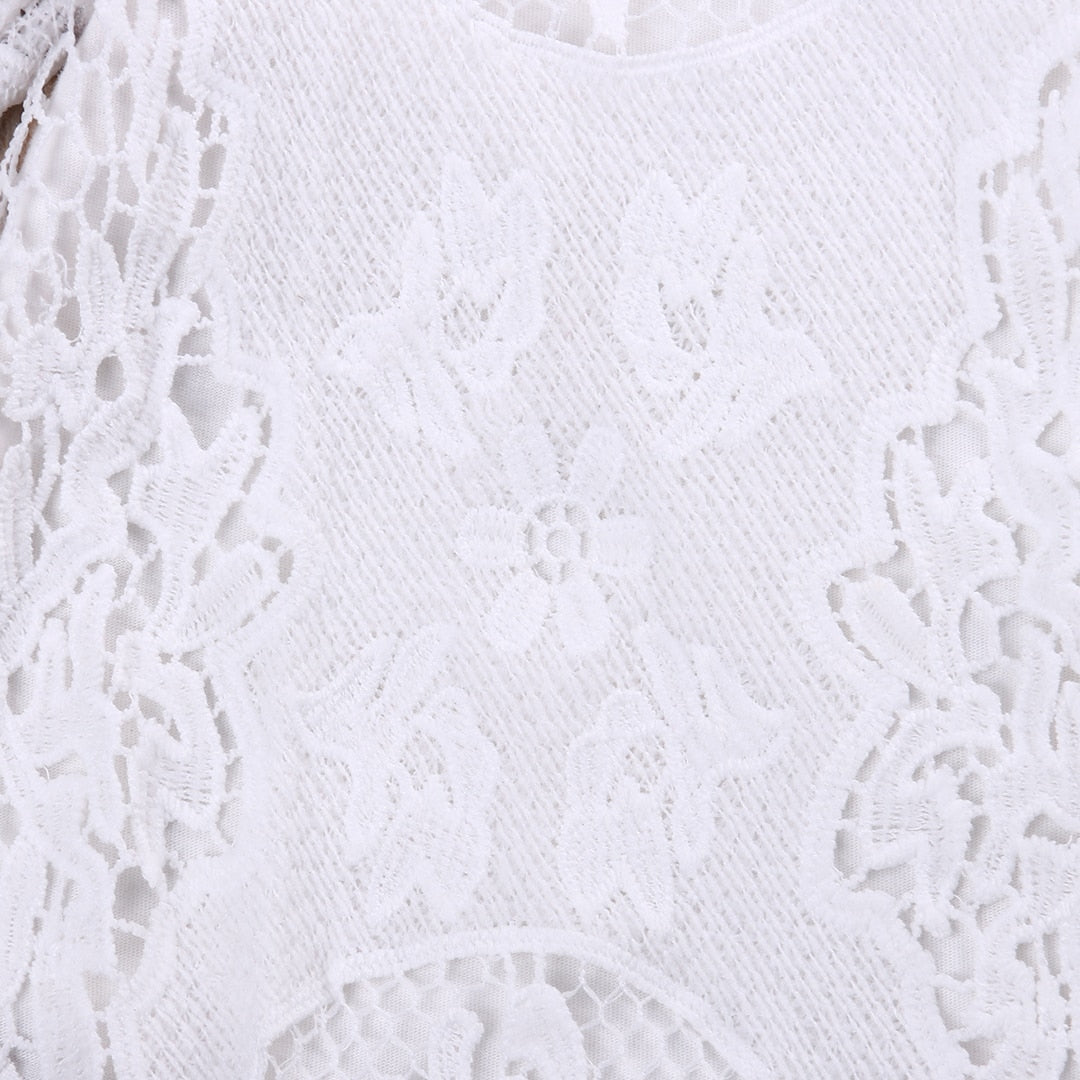 This charming white lace onesie will make your little girl the best dressed baby in town. The three-quarter length bell sleeves give this top a trendy, boho chic style. Alone, this a great addition to her spring or summer clothes or pairs well with other layers for cooler weather. The bodysuit is lined for coverage and has three snaps for easy diaper changes. Dress it up with a skirt or dress for a special occasion or keep it more casual with some shorts for a breezy summer look - either way, her style will be on point.